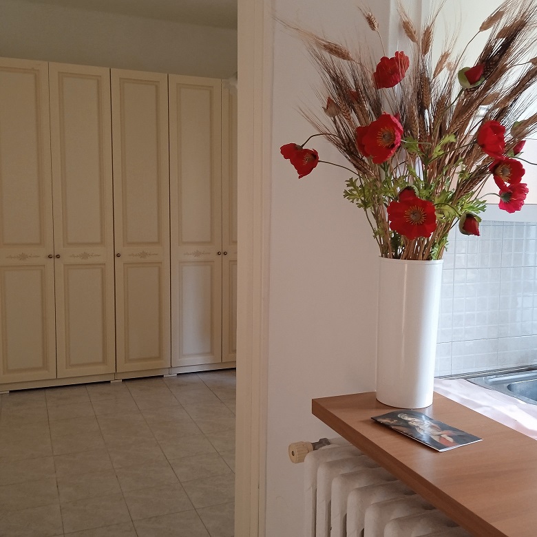 L`alloggio risulta essere così composto: ingresso, soggiorno con angolo cottura, camera matrimoniale, servizio con finestra.