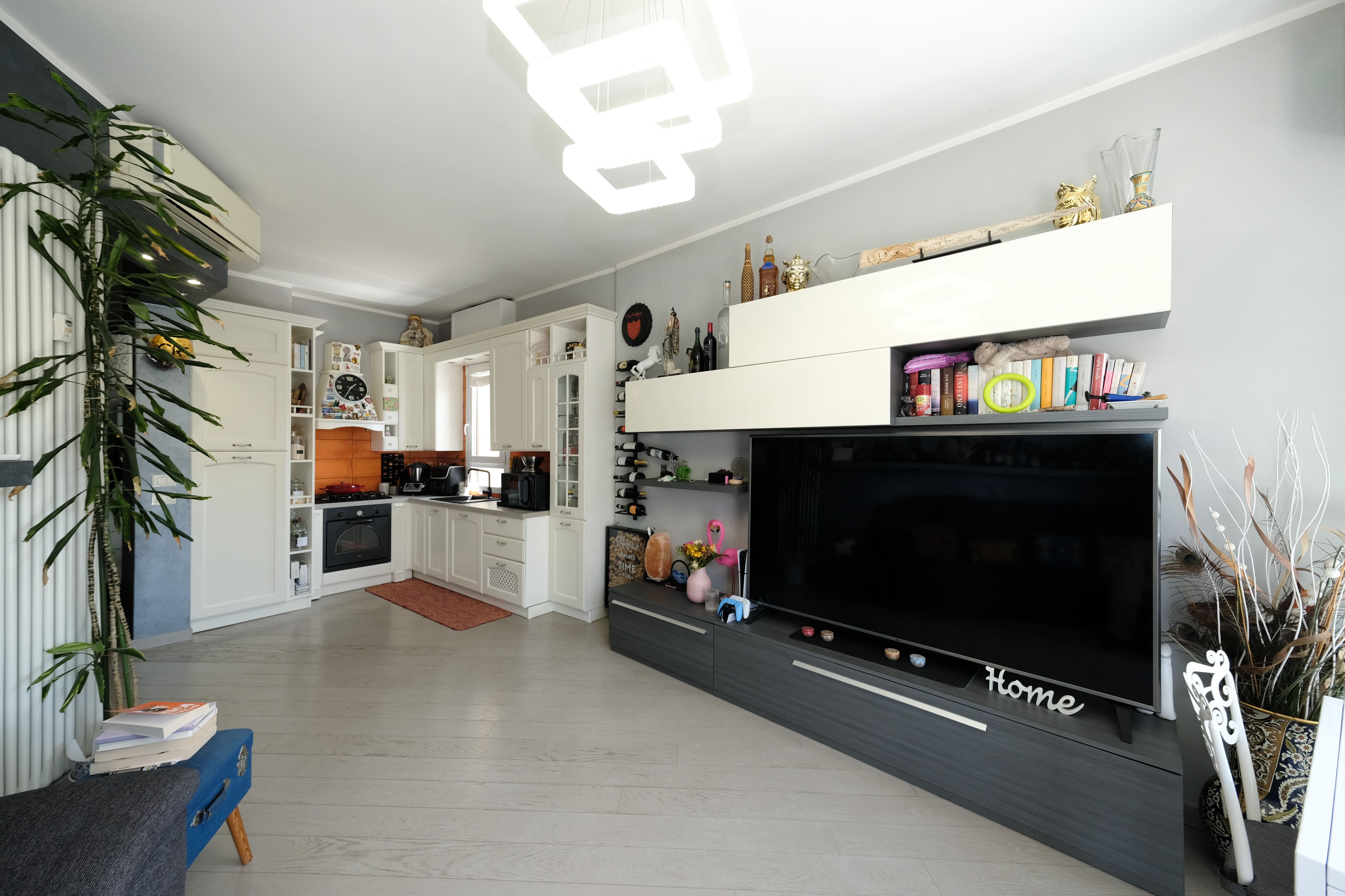 L’immobile si compone di: ingresso, ampio soggiorno con cucina a vista, due camere da letto, doppi servizi.