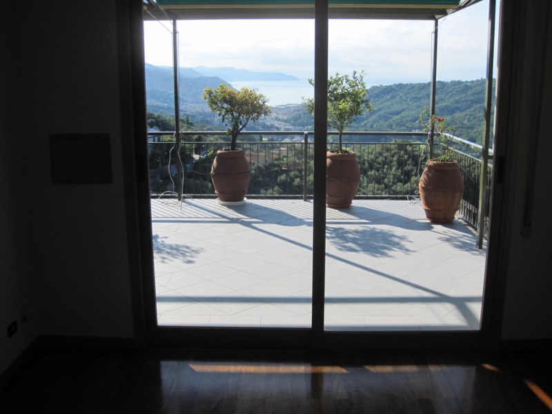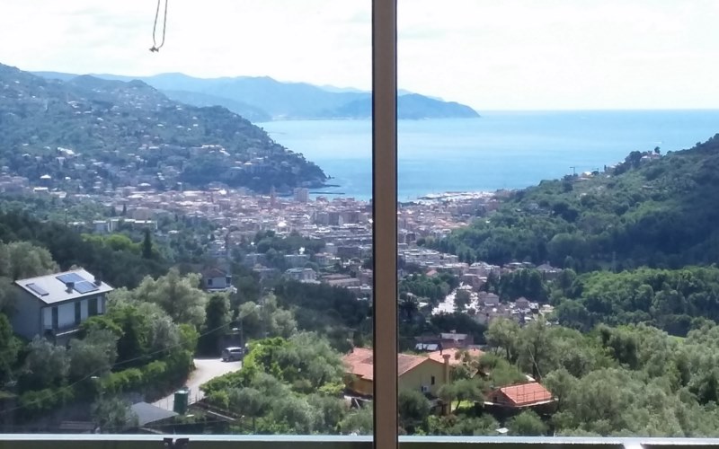 Sulla prima collina di Rapallo a 5 minuti dal casello autostradale, immersi nella natura, in elegante palazzina di complessive 6 unità immobiliari, splendido appartamento con spettacolare terrazza con vista sul Golfo di Rapallo e 2 fasce di terreno a pochi metri da casa.