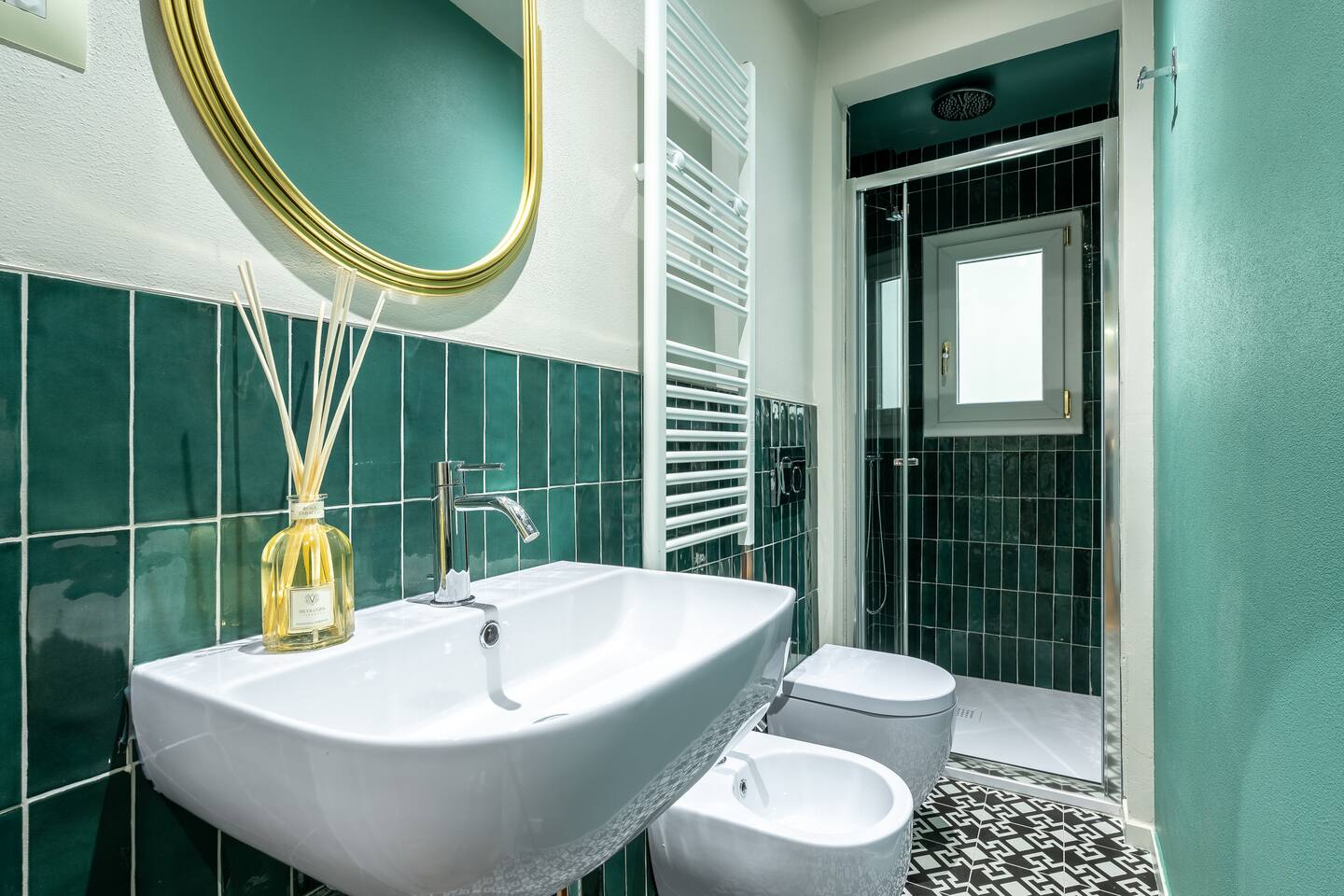 L'intervento ha voluto preservare il sapore della casa antica ravvivandolo con l'uso di colori vivaci e caratterizzanti ispirati alle atmosfere vintage di un secolo fa, con impianti, finiture ed arredi cuciti su misura, tra cui spicca la doccia con seduta e cromoterapia.