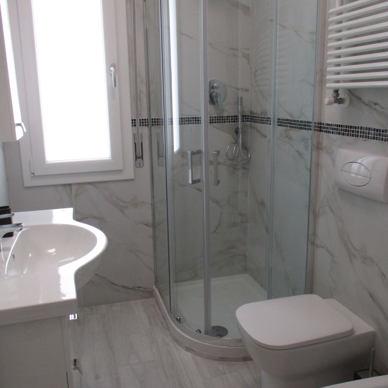 In un condominio in prima collina risalente agli anni '50 del secolo scorso, un appartamento con le tipica distribuzione interna e le finiture dell'epoca è stato completamente rinnovato annettendo il vecchio cucinotto al soggiorno per creare una spaziosa zona living contemporanea... nuovi materiali e finiture eleganti valorizzano il lavoro senza perdere di vista il budget.